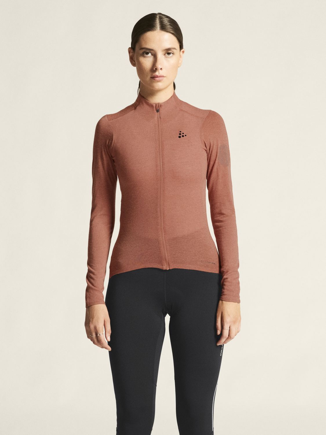 De Craft Core Bike Essence Wool Jersey lange mouw is een fietsshirt dat zowel als buitenlaag werkt bij mildere temperaturen als als tussenlaag onder een fietsjack in koudere omstandigheden.